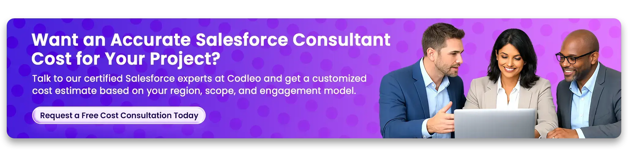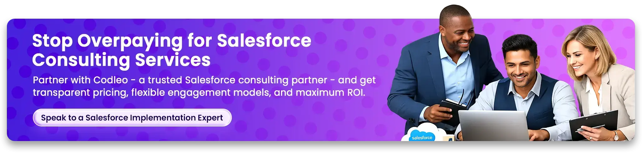 Codleo, a Salesforce Summit Partner, is here to help you make the most of the Salesforce ecosystem. With a team of over 300 Salesforce experts, we guide businesses through their Salesforce journey.