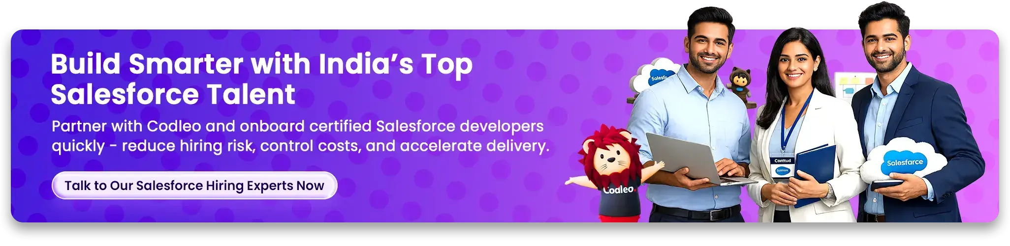 Hiring a Salesforce developer on a project basis or through outsourcing can save you money compared to having an in-house team. You can reduce costs related to recruiting, training, and keeping full-time employees by hiring skilled experts from trusted Salesforce service providers. Leading businesses around the world rely on Salesforce services for these reasons. With so many benefits, why wait? Take the next step and hire top Salesforce developers.