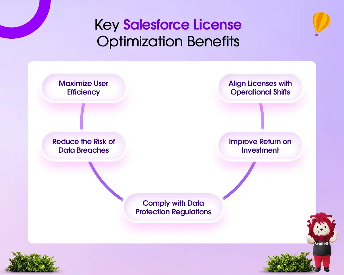 Salesforce license optimization is crucial for running operations efficiently. It helps reduce costs, enhance security, and improve return on investment.
