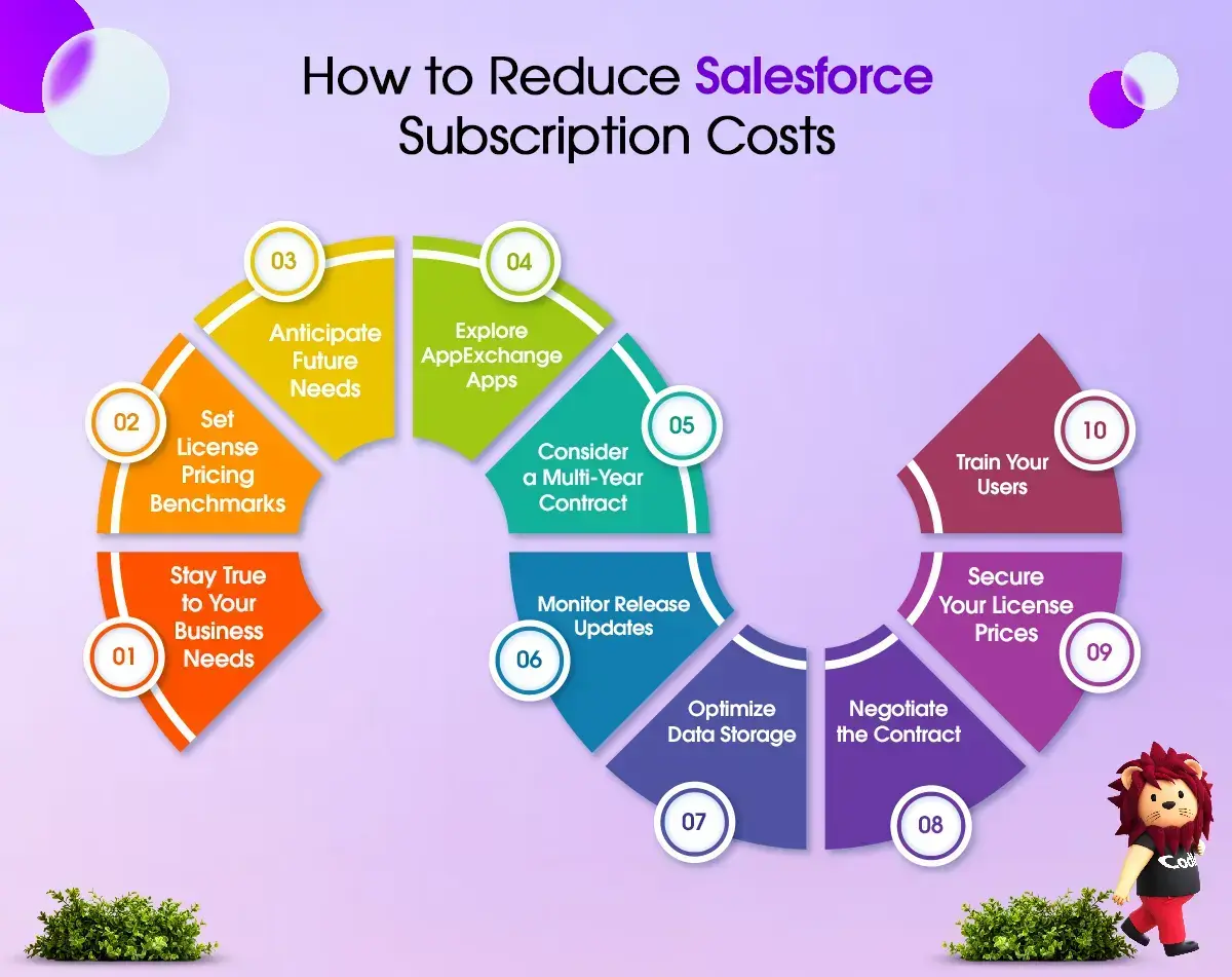 If you want to lower your Salesforce costs while keeping all the benefits, consider signing a long-term contract. It can help you achieve a better price per user and ensure Salesforce supports your business for years to come, while saving you money.